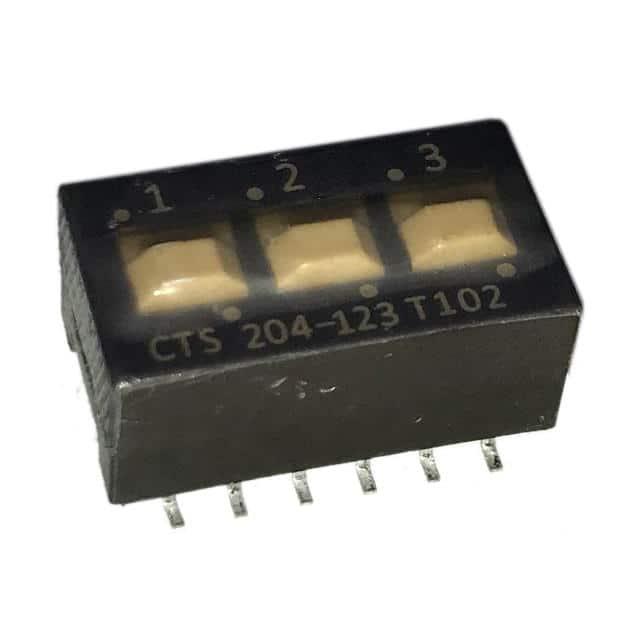 This is manufactured by CTS Electrocomponents. The manufacturer part number is 204-123ST. Washable - yes. It is assigned with possible HTSUS value of 8536.50.9065. The product is rohs3 compliant. The product offers long-lasting services of 5,000 cycles. Moreover, it has gull wing terminal style. The product has -55°c ~ 85°c operating temperature range. It is 0.394" (10.00mm) high above board. The product carries possible position value of 3. Features a raised actuator level. Moreover, the product has a nominal 24vdc voltage rating. In addition, it is reach unaffected. It is shipped in tube. Furthermore, the product is galvanized with excellent gold contact finishing. Its typical moisture sensitivity level is 1 (unlimited). Its accurate length is 0.686" (17.42mm). It has an integral spdt circuit. It has a long 8 weeks standard lead time. Additionally, the product's output is 50ma The splendid features of the product include epoxy sealed terminals, tape seal. The product is available in surface mount configuration. The product 204, is a highly preferred choice for users. The product's body is nicely designed from plastic materials. The product carries slide (standard) actuator. Moreover, the product is 0.100" (2.54mm), full The product is designated with the ear99 code number