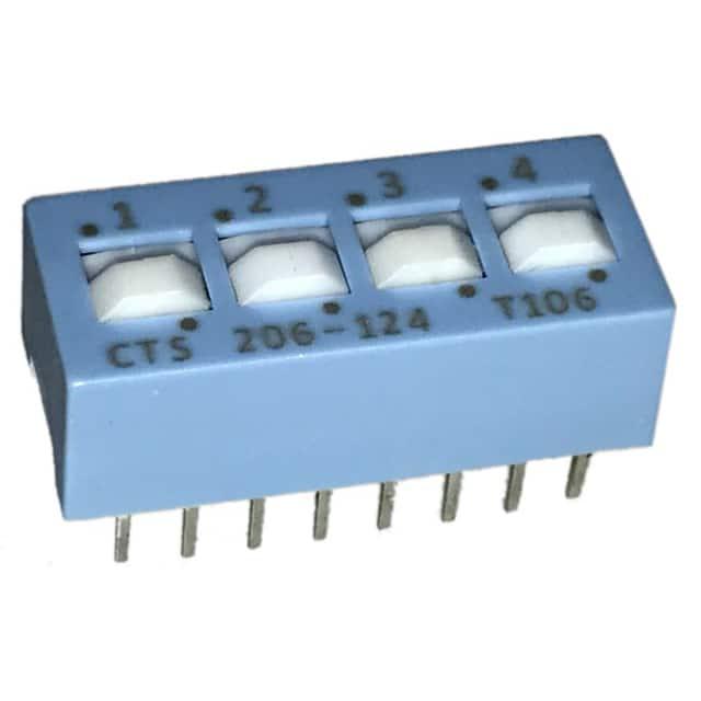 This is manufactured by CTS Electrocomponents. The manufacturer part number is 206-124S. Washable - no. It is assigned with possible HTSUS value of 8536.50.9065. The product is rohs3 compliant. The product offers long-lasting services of 10,000 cycles. Moreover, it has pc pin terminal style. The product has -55°c ~ 85°c operating temperature range. It is 0.334" (8.48mm) high above board. The product carries possible position value of 4. Features a raised actuator level. Moreover, the product has a nominal 24vdc voltage rating. In addition, it is reach unaffected. It is shipped in tube. Furthermore, the product is galvanized with excellent gold contact finishing. Its typical moisture sensitivity level is not applicable. Its accurate length is 0.886" (22.50mm). It has an integral spdt circuit. It has a long 8 weeks standard lead time. Additionally, the product's output is 50ma The splendid features of the product include epoxy sealed terminals. The product is available in through hole configuration. The product 206, is a highly preferred choice for users. The product's body is nicely designed from plastic materials. The product carries slide (standard) actuator. Moreover, the product is 0.100" (2.54mm), full The product is designated with the ear99 code number