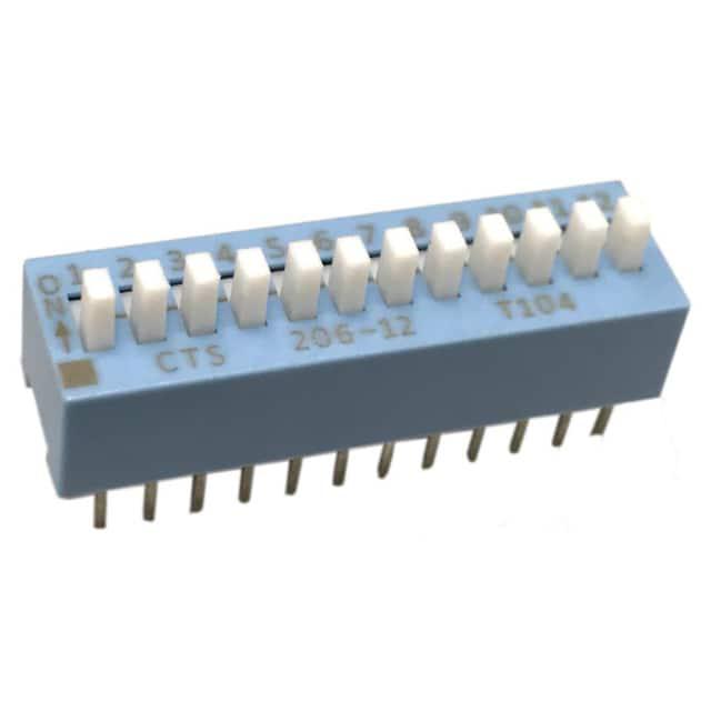 This is manufactured by CTS Electrocomponents. The manufacturer part number is 206-12E. Washable - no. It is assigned with possible HTSUS value of 8536.50.9065. The product is rohs3 compliant. The product offers long-lasting services of 10,000 cycles. Moreover, it has pc pin terminal style. The product has -55°c ~ 85°c operating temperature range. It is 0.434" (11.02mm) high above board. The product carries possible position value of 12. Features a raised actuator level. Moreover, the product has a nominal 24vdc voltage rating. In addition, it is reach unaffected. It is shipped in tube. Furthermore, the product is galvanized with excellent gold contact finishing. Its typical moisture sensitivity level is not applicable. Its accurate length is 1.286" (32.66mm). It has an integral spst circuit. It has a long 8 weeks standard lead time. Additionally, the product's output is 50ma The product is available in through hole configuration. The product 206, is a highly preferred choice for users. The product's body is nicely designed from plastic materials. The product carries slide (standard) actuator. Moreover, the product is 0.100" (2.54mm), full The product is designated with the ear99 code number