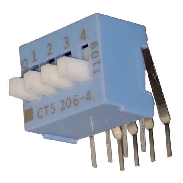 This is manufactured by CTS Electrocomponents. The manufacturer part number is 206-4RAES. Washable - no. It is assigned with possible HTSUS value of 8536.50.9065. The product is rohs3 compliant. The product offers long-lasting services of 10,000 cycles. Moreover, it has pc pin terminal style. The product has -55°c ~ 85°c operating temperature range. It is 0.400" (10.16mm) high above board. The product carries possible position value of 4. Features a raised actuator level. Moreover, the product has a nominal 24vdc voltage rating. In addition, it is reach unaffected. It is shipped in tube. Furthermore, the product is galvanized with excellent gold contact finishing. Its typical moisture sensitivity level is not applicable. Its accurate length is 0.486" (12.34mm). It has an integral spst circuit. It has a long 8 weeks standard lead time. Additionally, the product's output is 50ma The splendid features of the product include epoxy sealed terminals. The product is available in through hole, right angle configuration. The product 206ra, is a highly preferred choice for users. The product's body is nicely designed from plastic materials. The product carries slide (standard) actuator. Moreover, the product is 0.100" (2.54mm), full The product is designated with the ear99 code number
