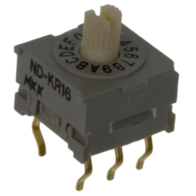 This is manufactured by NKK Switches. The manufacturer part number is NDKR16P. Washable - yes. It is assigned with possible HTSUS value of 8536.50.9065. The product is rohs3 compliant. The product offers long-lasting services of 20,000 cycles. Moreover, it has pc pin terminal style. The product has -25°c ~ 75°c operating temperature range. It is 0.331" (8.40mm) high above board. The product also provide mechanical stability with 20,000 steps. The product carries possible position value of 16. Features a raised actuator level. Moreover, the product has a nominal 5vdc voltage rating. In addition, it is reach unaffected. It is shipped in tray. Furthermore, the product is galvanized with excellent gold contact finishing. Its typical moisture sensitivity level is 1 (unlimited). Its accurate length is 0.312" (7.92mm). It has an integral hexadecimal circuit. It has a long 35 weeks standard lead time. Additionally, the product's output is 100ma The splendid features of the product include process sealed. The product is available in through hole configuration. The product nd, is a highly preferred choice for users. The product's body is nicely designed from polyamide (pa), nylon, glass filled materials. The product carries rotary with shaft actuator. Moreover, the product is 0.100" (2.54mm), full The product is made from sturdy beryllium copper materials. The product is designated with the ear99 code number