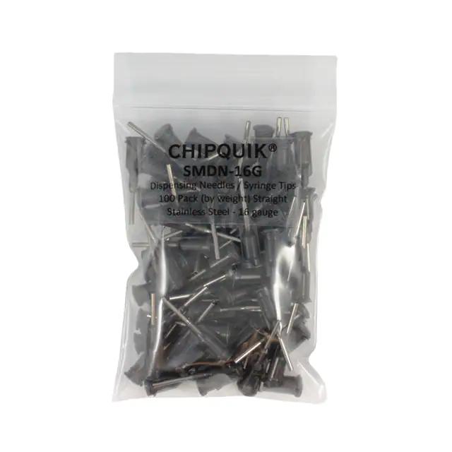 This is manufactured by Chip Quik Inc.. The manufacturer part number is SMDN-16G. It is assigned with possible HTSUS value of 7326.90.8688. The product is rohs3 compliant. The built-in exquisite tip is a needle tip tip. It comes in dispenser needle, tip configuration. In addition, it is reach unaffected. It is shipped in bulk. Its typical moisture sensitivity level is not applicable. It has a long 4 weeks standard lead time. Moreover, it corresponds to smdn, a base product number of the product. The product is designated with the ear99 code number