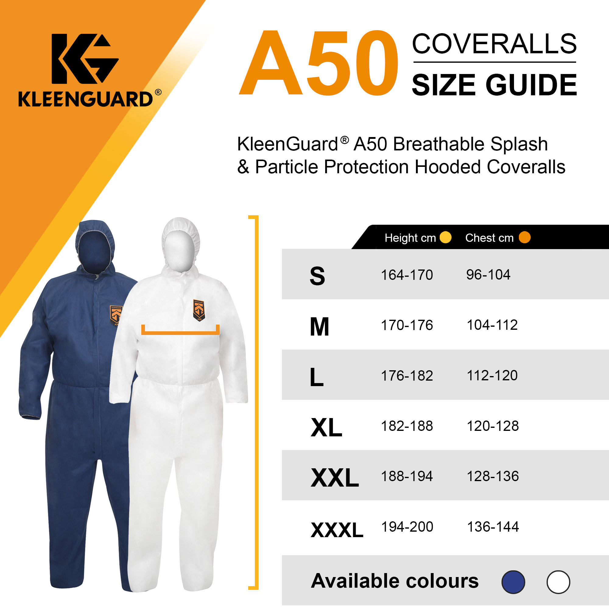 This is 104 → 112cm Men's Blue Splash & Particle Resistant PP Coverall manufactured by Kimberly Clark. The manufacturer part number is 96880. Additionally, the product is designed with disposable overalls Style. In addition, men is the available "Gender" of the product. The product is made from highly stable and reliable polypropylene. Its accurate length is 170 → 176cm. The product kleenguard® a50, is a highly preferred choice for users. The product is available in m size.
