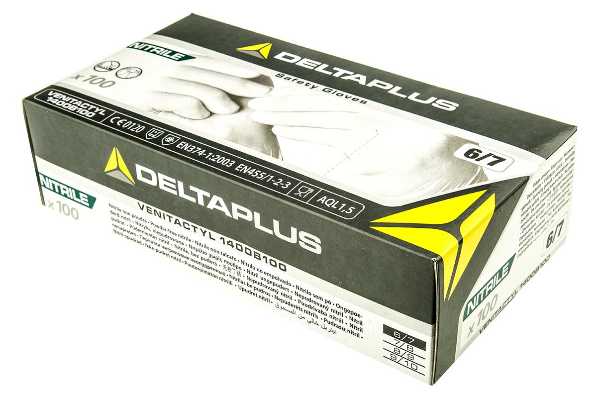 This is Blue Nitrile Gloves size 6.5 - S Powder-Free x 100 manufactured by Delta Plus. The manufacturer part number is V1400B10006.