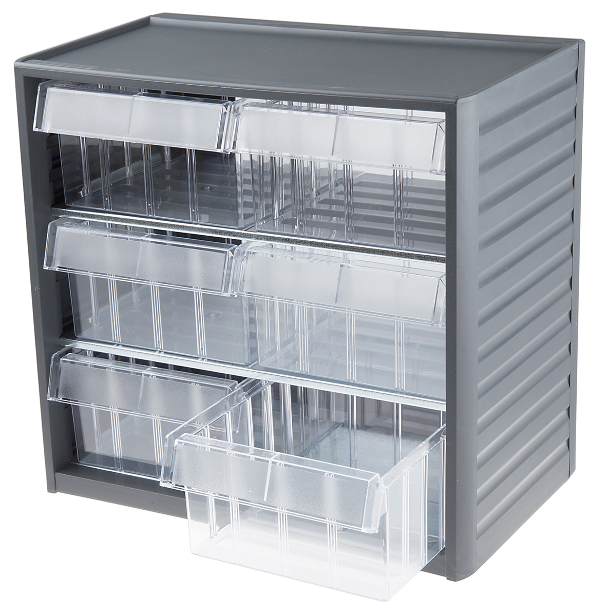 This is Grey PP 6 Drawer Storage Unit Transparent Drawers 290mm x 310mm x 180mm manufactured by RS Pro. The manufacturer part number is 909-6952. Furthermore, the product is 310mm wide. The product comes in 180mm depth. In addition, the height is 290mm.