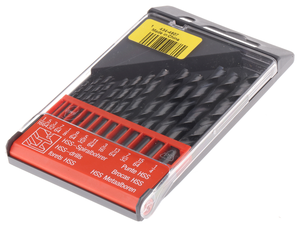 This is HSS 1/16in to 1/4in 13 piece Jobber Drill Set manufactured by RS Pro. The manufacturer part number is 434-4607. The product is made from highly stable and reliable hss.