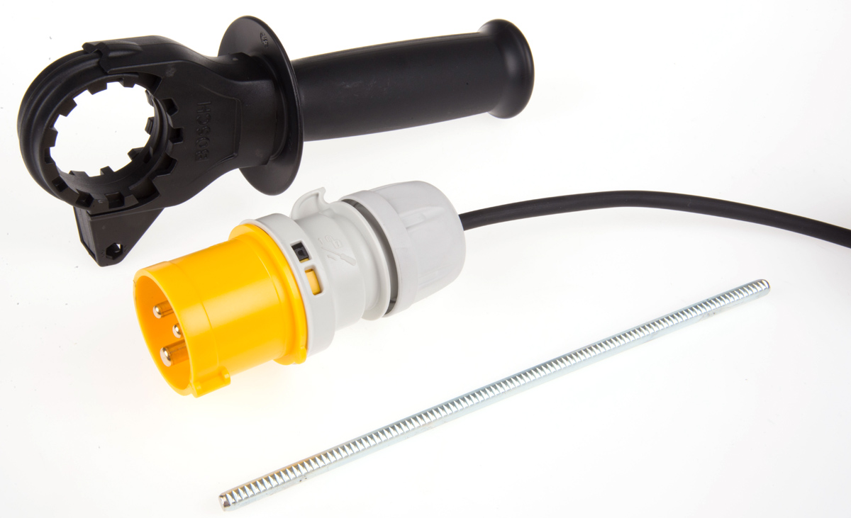 This is Keyless 110V Corded Impact Drill BS 4343 Plug manufactured by Bosch. The manufacturer part number is 060114E560. The product has a straight orientation. Moreover, the product has a nominal 110v voltage rating.