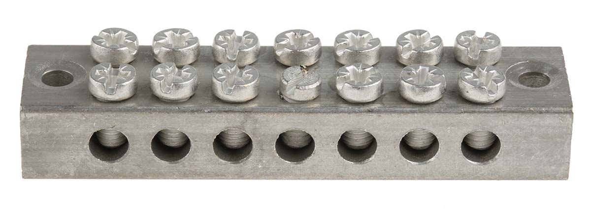 This is 7 Way Double Screw Earth Terminal Block Screw Down 0 → 16 mm² 76.99mm length Grey manufactured by RS Pro. The manufacturer part number is 283-0774. In addition, the height is 12.2mm. The product also features robust brass housing material. Furthermore, the product is 18.5mm wide. Its accurate length is 77.2mm.