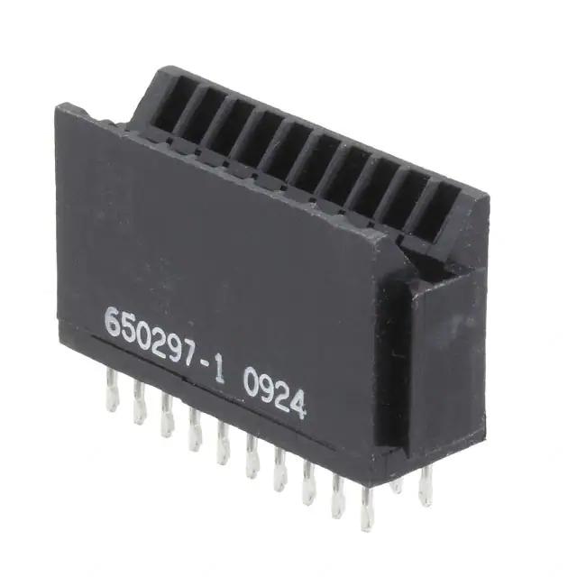 This is manufactured by TE Connectivity AMP Connectors. The manufacturer part number is 650297-1. It is assigned with possible HTSUS value of 8536.69.4040. The product is rohs non-compliant. It is designed from highly reliable polyester, glass filled insulating material. A typical product' card thickness is 0.054" ~ 0.071" (1.37mm ~ 1.80mm). It has 30.0µin (0.76µm) of contact finishing thickness. The product carries possible position value of 20. The product features a non specified - dual edge card type. In addition, it is reach affected. It comes in 2 of rows. It is shipped in tray. In addition, female is the available "Gender" of the product. Furthermore, the product is galvanized with excellent gold contact finishing. Its typical moisture sensitivity level is 1 (unlimited). The product features press-fit termination style. The product is available in through hole configuration. It has a classic black colour. The product amp pace, is a highly preferred choice for users. It features dual read values. Moreover, the product is 0.100" (2.54mm) The product is made from sturdy phosphor bronze materials. Moreover, it corresponds to 650297, a base product number of the product. The product is designated with the ear99 code number