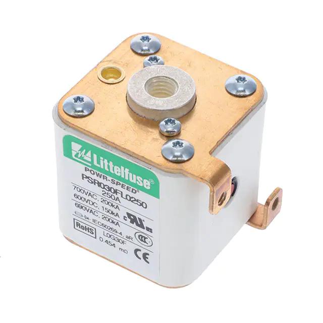 This is manufactured by Littelfuse Inc.. The manufacturer part number is PSR030FL0250Z. It is assigned with possible HTSUS value of 8536.10.0040. The product is rohs3 compliant. Whereas, the breaking capacity of the product at rated voltage is 200ka ac, 150ka dc. 600 v of DC voltage rating. The product has -55°c ~ 125°c operating temperature range. It is approved by ccc, ce, curus, ul. The product exhibits 700 v of AC voltage rating. In addition, it is reach unaffected. The product is widely employed in semiconductors. It has a 4668 melting I²t. It responds within fast blow. It is shipped in bulk. The product's diameters include 1.969" l x 1.693" w x 1.929" h (50.00mm x 43.00mm x 49.00mm). It has a long 9 weeks standard lead time. Additionally, the product's output is 250a Its typical moisture sensitivity level is not applicable. The product is available in bolt mount configuration. The product powr-speed® psr, is a highly preferred choice for users. It integrates a square fuse type. The product is designated with the ear99 code number