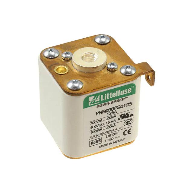 This is manufactured by Littelfuse Inc.. The manufacturer part number is PSR030FS0125Z. It is assigned with possible HTSUS value of 8536.10.0040. The product is rohs3 compliant. Whereas, the breaking capacity of the product at rated voltage is 200ka ac, 150ka dc. 600 v of DC voltage rating. The product has -55°c ~ 125°c operating temperature range. It is approved by ccc, ce, curus, ul. The product exhibits 700 v of AC voltage rating. In addition, it is reach unaffected. The product is widely employed in semiconductors. It has a 707 melting I²t. It responds within fast blow. It is shipped in bulk. The product's diameters include 1.969" l x 1.693" w x 1.929" h (50.00mm x 43.00mm x 49.00mm). Additionally, the product's output is 125a Its typical moisture sensitivity level is not applicable. The product is available in bolt mount configuration. The product powr-speed® psr, is a highly preferred choice for users. It integrates a square fuse type. The product is designated with the ear99 code number