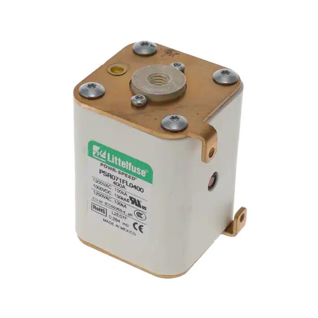 This is manufactured by Littelfuse Inc.. The manufacturer part number is PSR071FL0400Z. It is assigned with possible HTSUS value of 8535.10.0040. The product is rohs3 compliant. Whereas, the breaking capacity of the product at rated voltage is 100ka ac, 150ka dc. 1 kv of DC voltage rating. The product has -55°c ~ 125°c operating temperature range. It is approved by ccc, ce, curus, ul. The product exhibits 1.3 kv of AC voltage rating. In addition, it is reach unaffected. The product is widely employed in semiconductors. It has a 40153 melting I²t. It responds within fast blow. It is shipped in bulk. The product's diameters include 2.913" l x 2.028" w x 2.264" h (74.00mm x 51.50mm x 57.50mm). It has a long 9 weeks standard lead time. Additionally, the product's output is 400a Its typical moisture sensitivity level is not applicable. The product is available in bolt mount configuration. The product powr-speed® psr, is a highly preferred choice for users. It integrates a square fuse type. The product is designated with the ear99 code number