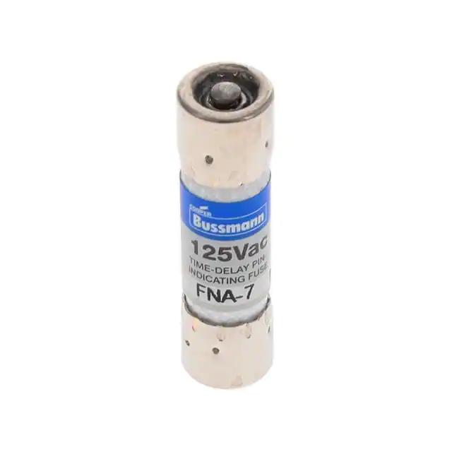 This is manufactured by Eaton - Bussmann Electrical Division. The manufacturer part number is FNA-7. It is assigned with possible HTSUS value of 8536.10.0040. The product is rohs compliant. Whereas, the breaking capacity of the product at rated voltage is 10ka. It is approved by ce, csa, ul. Moreover, the product comes in [Package/ Case]. The product exhibits 125 v of AC voltage rating. The product is widely employed in electrical, industrial. It responds within slow blow. It is shipped in bulk. The product's diameters include 0.406" dia x 1.500" l (10.31mm x 38.10mm). It has a long 5 weeks standard lead time. Additionally, the product's output is 7a Its typical moisture sensitivity level is 1 (unlimited). The splendid features of the product include indicating. The product is available in requires holder configuration. The product fna, is a highly preferred choice for users. It integrates a cartridge fuse type. The product is designated with the ear99 code number