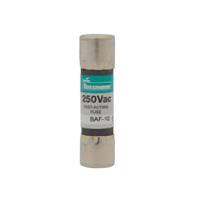 This is manufactured by Eaton - Bussmann Electrical Division. The manufacturer part number is BAF-10. It is assigned with possible HTSUS value of 8536.10.0040. The product is rohs non-compliant. Whereas, the breaking capacity of the product at rated voltage is 200a. It is approved by ce, csa, ur. Moreover, the product comes in [Package/ Case]. The product exhibits 250 v of AC voltage rating. The product is widely employed in electrical, industrial. It responds within fast blow. Class Information: cc. It is shipped in bulk. The product's diameters include 0.406" dia x 1.500" l (10.30mm x 38.10mm). It has a long 5 weeks standard lead time. Additionally, the product's output is 10a Its typical moisture sensitivity level is 1 (unlimited). The product is available in requires holder configuration. The product baf, is a highly preferred choice for users. It integrates a cartridge fuse type. The product is designated with the ear99 code number