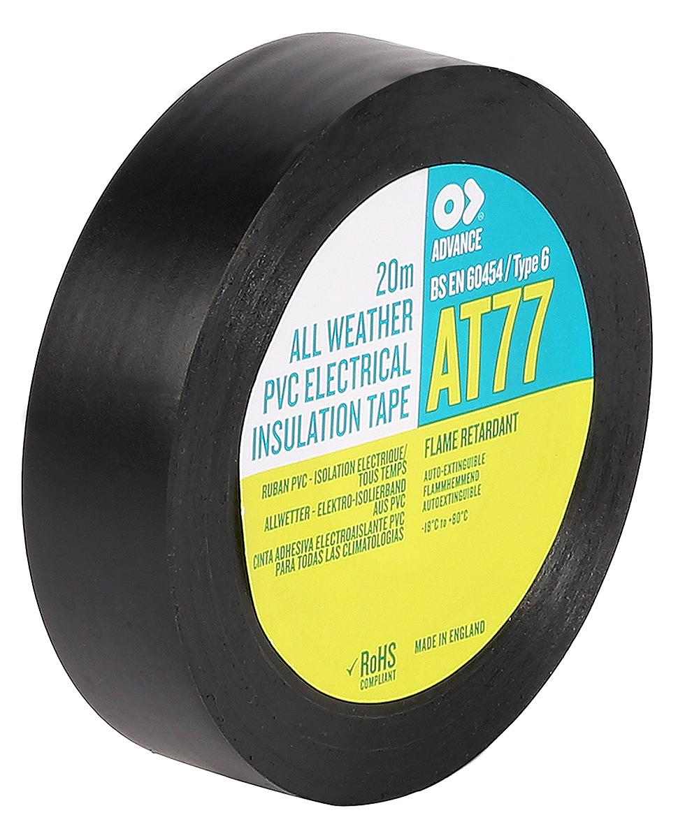 AT77 PVC tape Flame-retardant, PVC electrical insulation tape High elongation and adhesive power Standards EN 69454 / type 6. Electrical Tapes For electrical installation and repair work; soldered joints and seams; insulation of soldered joints, terminals, cable sockets and conduction rails.