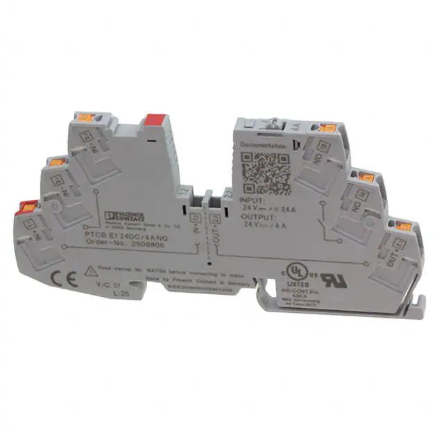 This is manufactured by Phoenix Contact. The manufacturer part number is 2909906. The product ptcb, is a highly preferred choice for users. The product has a current rating of 4a. It is assigned with possible HTSUS value of 8536.20.0020. The product is rohs compliant. It is shipped in box. It is a type of solid state breaker. It has equipped with 1 poles. 24 v of DC voltage rating. It has a long 20 weeks standard lead time. Additionally, the product's output is 4a Its typical moisture sensitivity level is not applicable. The product is available in din rail configuration. The product carries lever actuator. Is this product illuminated? none. The product is designated with the ear99 code number