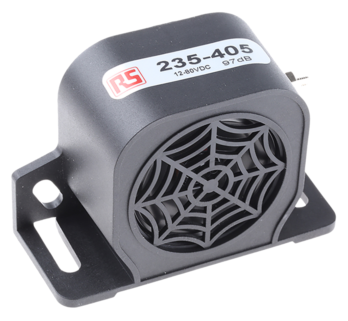 This is Electronic Sounder Black Single Tone 97dB at 1 Metre 12 → 80 V dc manufactured by RS Pro. The manufacturer part number is 235-405. The product also features robust glass filled nylon housing material.