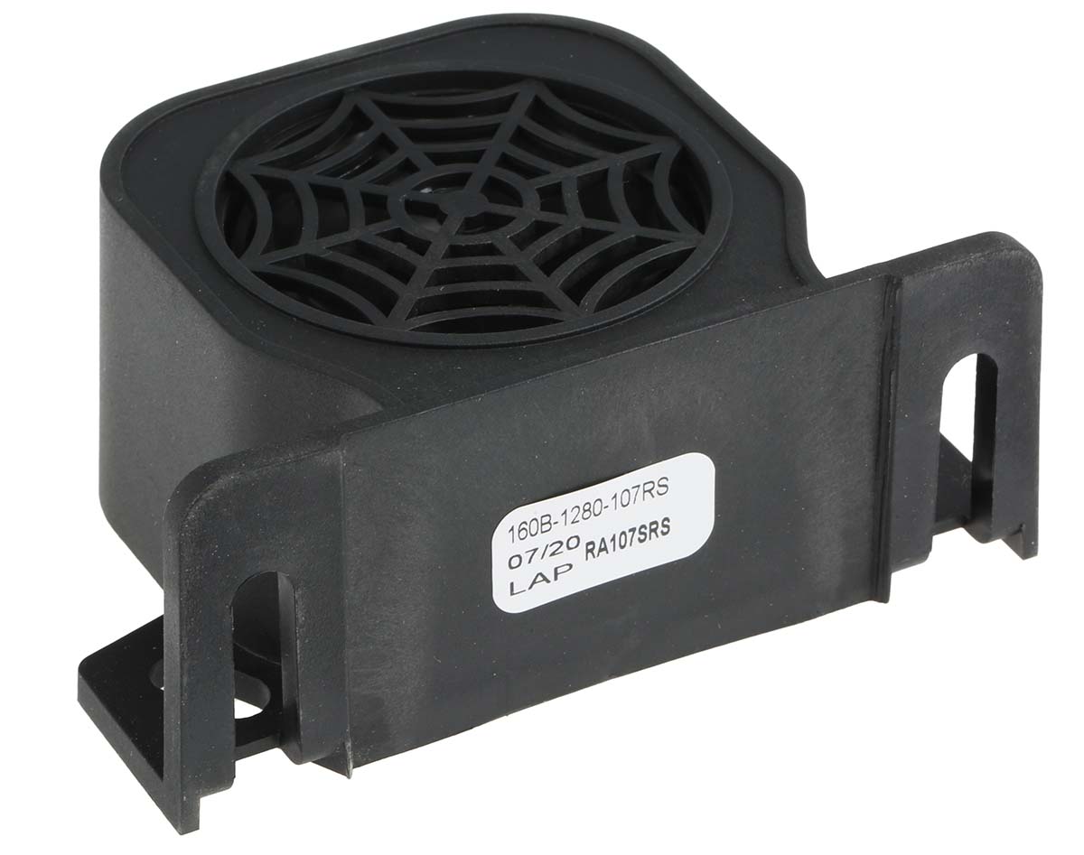 This is Black Single Tone Electronic Sounder 12 → 80 V dc 107dB at 1 Metre manufactured by RS Pro. The manufacturer part number is 235-411. The product also features robust glass filled nylon housing material.