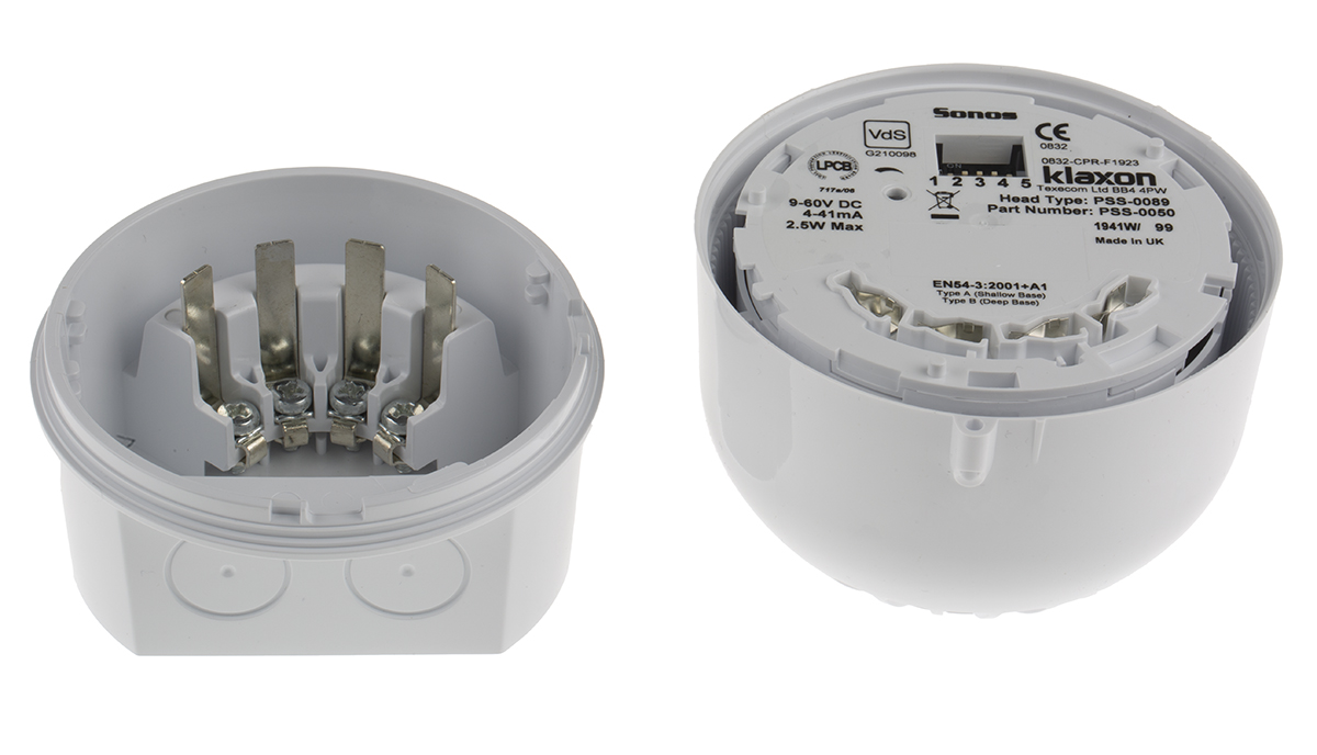 This is Sonos White 32 Tone Electronic Sounder 9 → 60 V dc 106dB at 1 Metre IP65 manufactured by Klaxon. The manufacturer part number is PSS-0050. Its diameter is 98 mm. The product also features robust pc housing material. The product sonos, is a highly preferred choice for users.