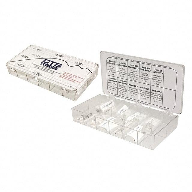 This is manufactured by Tusonix a Subsidiary of CTS Electronic Components. The manufacturer part number is 4400-901. The feed through capacitors is designed to provide robust applications in a variety of specific settings. The product is available in through hole configuration. It is assigned with possible HTSUS value of 8548.00.0000. It is shipped in case. The product is rohs compliant. In addition, it is reach unaffected. Its typical moisture sensitivity level is 1 (unlimited). Available in 50 pieces (10 values - 5 each) quantity. The product is designated with the ear99 code number