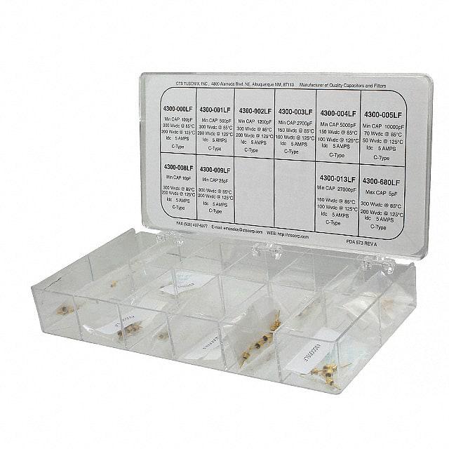 This is manufactured by Tusonix a Subsidiary of CTS Electronic Components. The manufacturer part number is 4300-900. The emi/rfi filters (lc, rc networks) is designed to provide robust applications in a variety of specific settings. The product is available in through hole configuration. It is assigned with possible HTSUS value of 8548.00.0000. It is shipped in case. The product is rohs compliant. In addition, it is reach unaffected. Its typical moisture sensitivity level is 1 (unlimited). Available in 50 pieces (10 values - 5 each) quantity. The product is designated with the ear99 code number