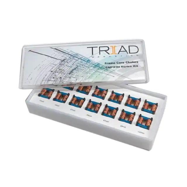 This is manufactured by Triad Magnetics. The manufacturer part number is CMF23HK. The common mode chokes is designed to provide robust applications in a variety of specific settings. The product is available in through hole configuration. It is assigned with possible HTSUS value of 8533.40.4000. It is shipped in case. The product cmf, is a highly preferred choice for users. The product is rohs3 compliant. In addition, it is reach unaffected. Its typical moisture sensitivity level is not applicable. It has a long 23 weeks standard lead time. Available in 21 pieces (7 values - 3 each) quantity. The product is designated with the ear99 code number