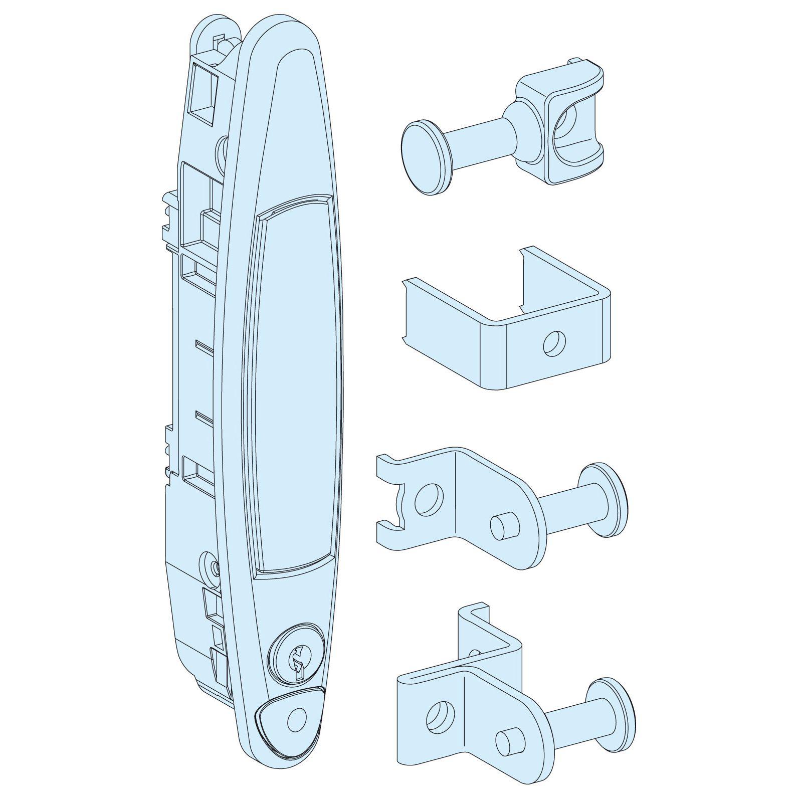 This is Metal Handle for Use with Prisma G Enclosure Prisma Pack 160 Enclosure Prisma Pack 250 Enclosure manufactured by Schneider Electric. The manufacturer part number is 01220. The product is made from highly stable and reliable metal. It comes in handle configuration.