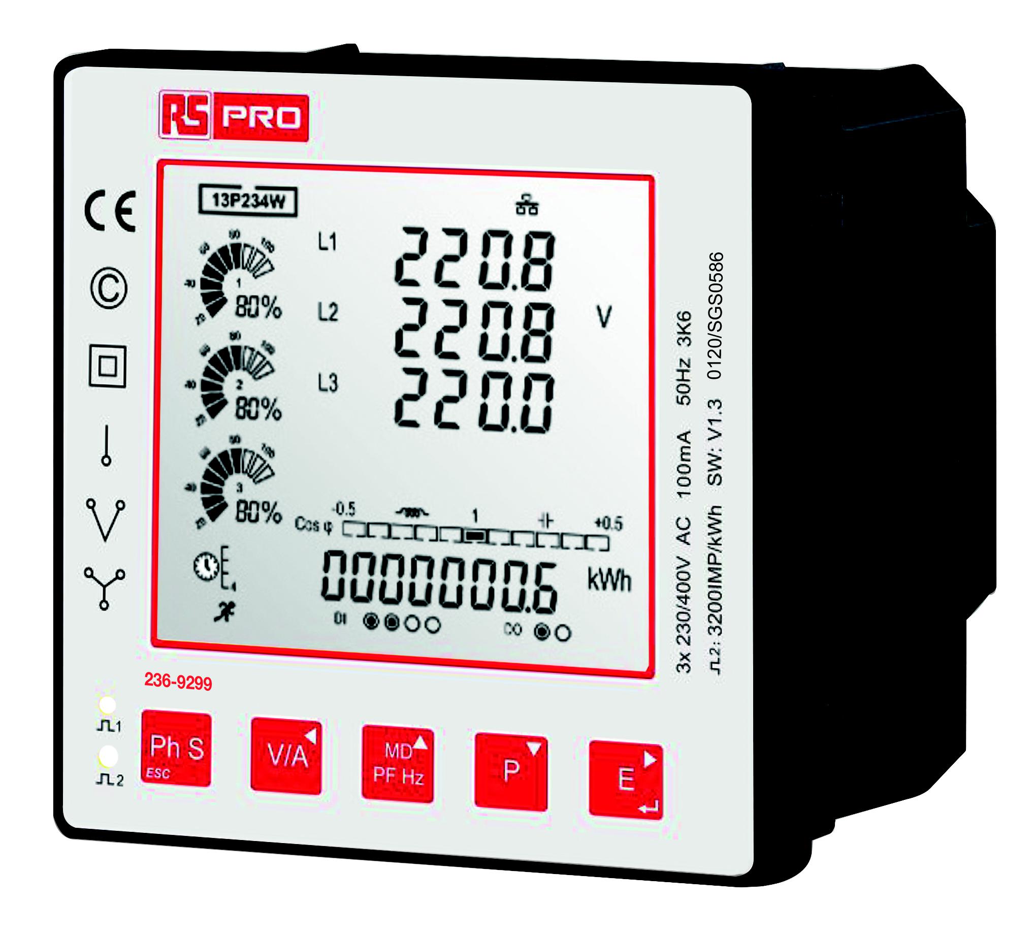 This is 1 3 Phase Backlit Energy Meter Type Energy Meter manufactured by RS PRO. The manufacturer part number is 236-9299. It features a remarkable backlit display. The product ap35, is a highly preferred choice for users.
