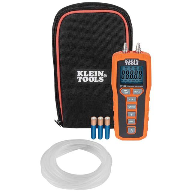 This is manufactured by Klein Tools, Inc.. The manufacturer part number is ET180. It is assigned with possible HTSUS value of 9026.20.4000. It is shipped in box. Its typical moisture sensitivity level is not applicable. The product is also supplied with batteries, case, manual. It has a long 2 weeks standard lead time. It comes in manometer configuration. It is ideal for measuring pressure (air, gas). The product is designated with the ear99 code number