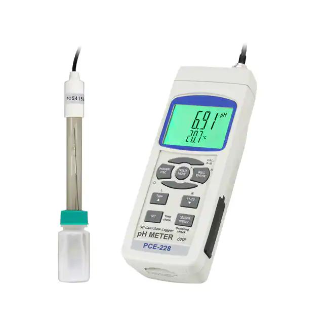 This is manufactured by PCE Instruments. The manufacturer part number is PCE-228. It is shipped in box. The product is not applicable. In addition, it is vendor undefined. Its typical moisture sensitivity level is not applicable. The product is also supplied with batteries (6), card reader, electrode, manual, memory card, sensor. It comes in specialized configuration. It is ideal for measuring ph, redox, temperature.