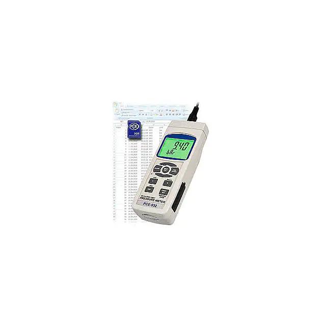 This is manufactured by PCE Instruments. The manufacturer part number is PCE-932. It is shipped in box. The product pce, is a highly preferred choice for users. The product is not applicable. In addition, it is vendor undefined. Its typical moisture sensitivity level is not applicable. The product is also supplied with battery, manual, memory card. It comes in manometer configuration. It is ideal for measuring pressure (air).