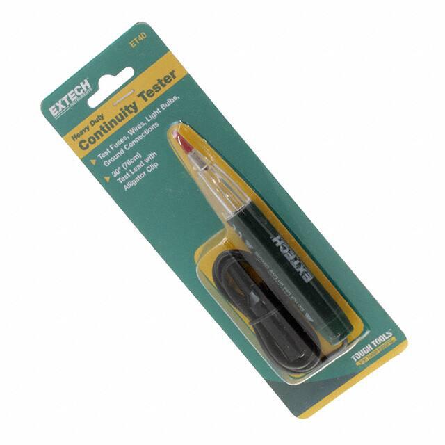 This is manufactured by FLIR Extech. The manufacturer part number is ET40. It is assigned with possible HTSUS value of 9030.33.3400. It is shipped in box. Specifications include measures continuity. The product et, is a highly preferred choice for users. Its typical moisture sensitivity level is not applicable. It comes in continuity tester configuration. The product is designated with the ear99 code number