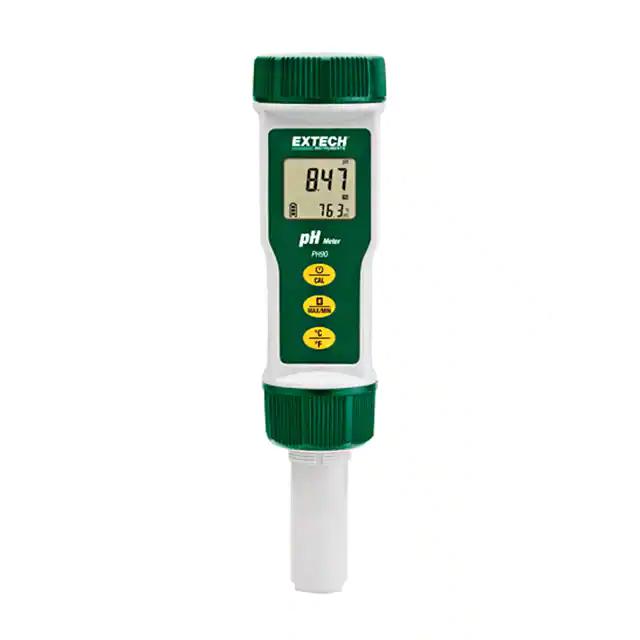 This is manufactured by FLIR Extech. The manufacturer part number is PH90. It is assigned with possible HTSUS value of 0000.00.0000. It is shipped in box. Its typical moisture sensitivity level is not applicable. The product is also supplied with battery, cap, electrode. It has a long 6 weeks standard lead time. It comes in specialty configuration. It is ideal for measuring acidity, ph.