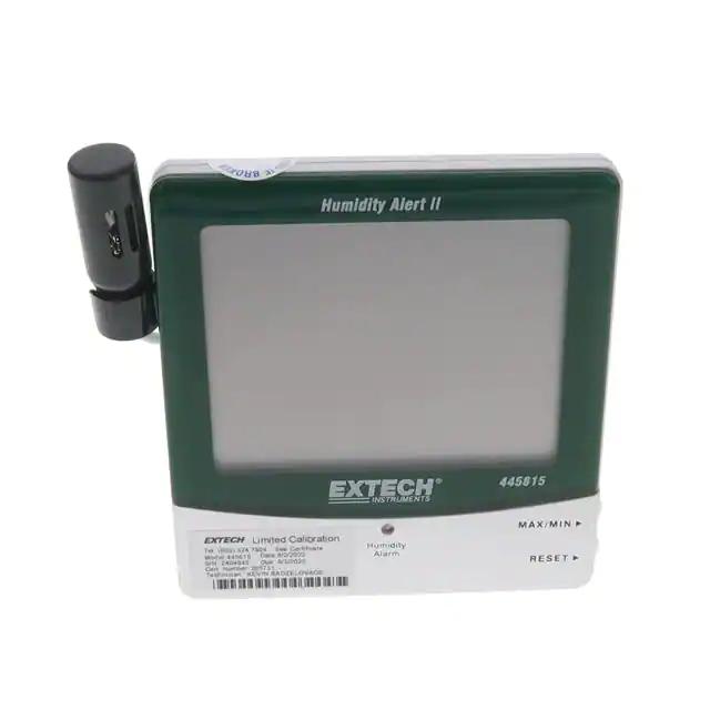 This is manufactured by FLIR Extech. The manufacturer part number is 445815-NISTL. It is assigned with possible HTSUS value of 0000.00.0000. It is shipped in box. Its typical moisture sensitivity level is not applicable. The product is also supplied with battery, bracket, calibration certificate, calibration salt bottles, sensor, stand. It has a long 9 weeks standard lead time. It comes in hygro thermometer (thermo hygrometer) configuration. It is ideal for measuring humidity, temperature.