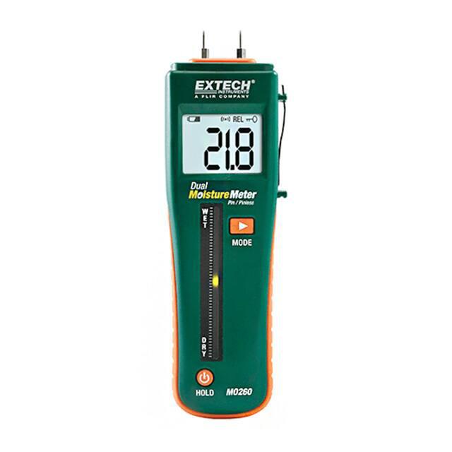 This is manufactured by FLIR Extech. The manufacturer part number is MO260. It is assigned with possible HTSUS value of 0000.00.0000. It is shipped in box. Its typical moisture sensitivity level is not applicable. The product is also supplied with battery, cap, case, replacement pins. It has a long 6 weeks standard lead time. It comes in moisture meter configuration. It is ideal for measuring humidity, moisture.