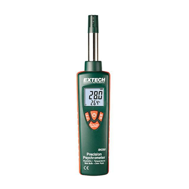 This is manufactured by FLIR Extech. The manufacturer part number is RH390. It is assigned with possible HTSUS value of 9025.80.3500. It is shipped in box. Its typical moisture sensitivity level is not applicable. The product is also supplied with battery, case. It has a long 6 weeks standard lead time. It comes in psychrometer configuration. It is ideal for measuring humidity, temperature. The product is designated with the ear99 code number