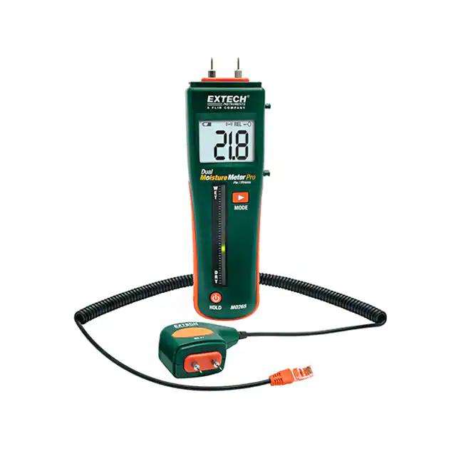 This is manufactured by FLIR Extech. The manufacturer part number is MO265. It is assigned with possible HTSUS value of 0000.00.0000. It is shipped in box. Its typical moisture sensitivity level is not applicable. The product is also supplied with battery, cap, case, probe, replacement pins. It has a long 6 weeks standard lead time. It comes in moisture meter configuration. It is ideal for measuring humidity, moisture.