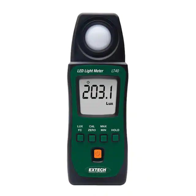 This is manufactured by FLIR Extech. The manufacturer part number is LT40. It is assigned with possible HTSUS value of 9027.50.4050. It is shipped in box. Its typical moisture sensitivity level is not applicable. The product is also supplied with battery, case, cap. It has a long 6 weeks standard lead time. It comes in light meter configuration. It is ideal for measuring light. The product is designated with the ear99 code number