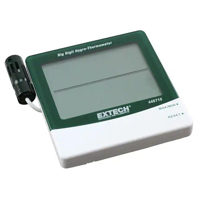 This is manufactured by FLIR Extech. The manufacturer part number is 445715. It is assigned with possible HTSUS value of 9025.80.1000. It is shipped in box. Its typical moisture sensitivity level is not applicable. The product is also supplied with battery, manual, sensor. It has a long 6 weeks standard lead time. It comes in hygro thermometer (thermo hygrometer) configuration. It is ideal for measuring humidity, temperature. The product is designated with the ear99 code number