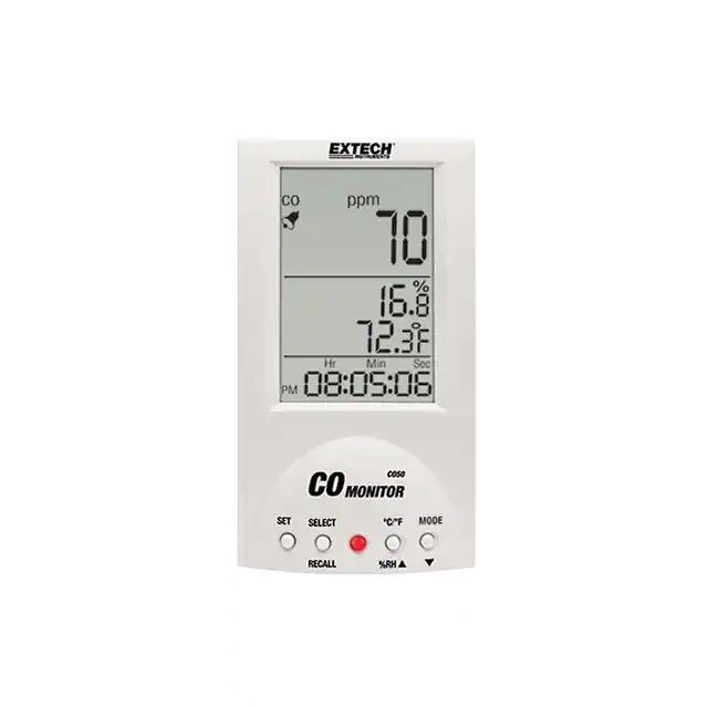 This is manufactured by FLIR Extech. The manufacturer part number is CO50. It is assigned with possible HTSUS value of 9027.10.6000. It is shipped in box. Its typical moisture sensitivity level is not applicable. The product is also supplied with adapter, plugs. It comes in gas analyzer configuration. It is ideal for measuring carbon monoxide. The product is designated with the ear99 code number