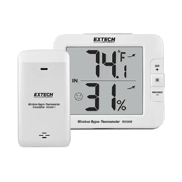 This is manufactured by FLIR Extech. The manufacturer part number is RH200W. It is assigned with possible HTSUS value of 9025.80.3500. It is shipped in box. Its typical moisture sensitivity level is not applicable. The product is also supplied with batteries, transmitter. It has a long 6 weeks standard lead time. It comes in hygro thermometer (thermo hygrometer) configuration. It is ideal for measuring humidity, temperature. Moreover, it corresponds to rh200, a base product number of the product. The product is designated with the ear99 code number