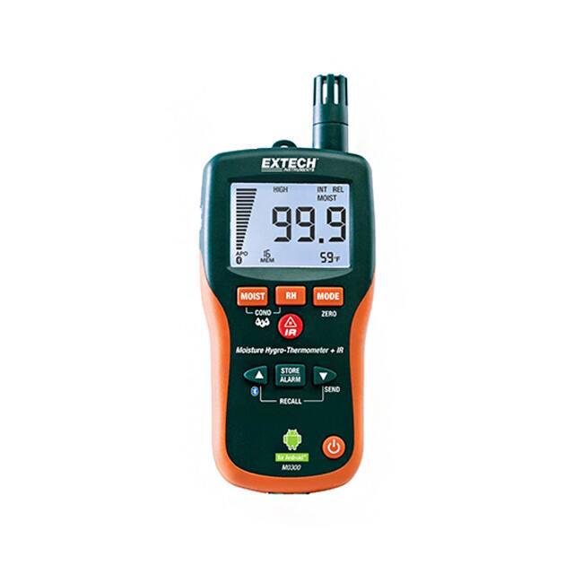 This is manufactured by FLIR Extech. The manufacturer part number is MO300. It is assigned with possible HTSUS value of 9025.80.5000. It is shipped in box. Its typical moisture sensitivity level is not applicable. The product is also supplied with battery, cable, case, probe. It comes in hygro thermometer (thermo hygrometer) configuration. It is ideal for measuring humidity, moisture. The product is designated with the 3a992a code number