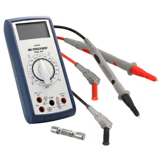 This is manufactured by B&K Precision. The manufacturer part number is 2703C. Additionally, the product is designed with handheld Style. It is assigned with possible HTSUS value of 9030.31.0000. The product is not applicable. It comes in digital (dmm) configuration. It performs basic function of voltage, current, resistance. In addition, it is reach unaffected. The product is also supplied with battery, hanger, manual, test leads. It is shipped in box. Its typical moisture sensitivity level is not applicable. It has a long 12 weeks standard lead time. It features a remarkable lcd display. The product tool kit® 2703, is a highly preferred choice for users. The product is designated with the ear99 code number