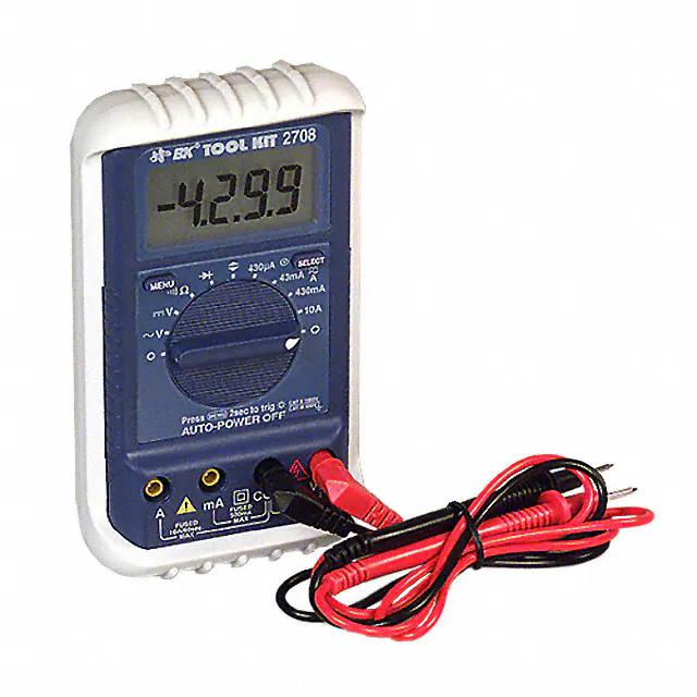 This is manufactured by B&K Precision. The manufacturer part number is 2708. Additionally, the product is designed with handheld Style. It is assigned with possible HTSUS value of 9030.31.0000. The product is not applicable. It comes in digital (dmm) configuration. It performs basic function of voltage, current, resistance. In addition, it is reach unaffected. The product is also supplied with battery, manual, test leads. Its typical moisture sensitivity level is not applicable. It features a remarkable lcd display. The splendid features of the product include auto off, backlight, hold, min/max/ave. The product tool kit® 2708, is a highly preferred choice for users. The product is designated with the ear99 code number