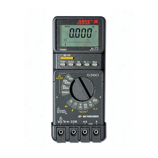 This is manufactured by B&K Precision. The manufacturer part number is 5360. Additionally, the product is designed with handheld Style. It is assigned with possible HTSUS value of 9030.31.0000. The product is not applicable. It comes in digital (dmm) configuration. It performs basic function of voltage, current, resistance, capacitance, frequency. In addition, it is reach unaffected. The product is also supplied with battery, manual, test leads. Its typical moisture sensitivity level is not applicable. It features a remarkable lcd, bar graph display. The splendid features of the product include auto off, data logging (rs-232). The product is designated with the ear99 code number