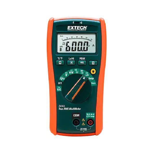 This is manufactured by FLIR Extech. The manufacturer part number is EX363. Additionally, the product is designed with handheld Style. It is assigned with possible HTSUS value of 9030.31.0000. It comes in digital (dmm) configuration. It performs basic function of voltage, current, resistance, capacitance, temperature, frequency. The product is also supplied with battery, case, probes. It is shipped in box. Its typical moisture sensitivity level is not applicable. It features a remarkable lcd display. The splendid features of the product include auto off, backlight, hold. The product ex360, is a highly preferred choice for users. The product is designated with the 3a992a code number