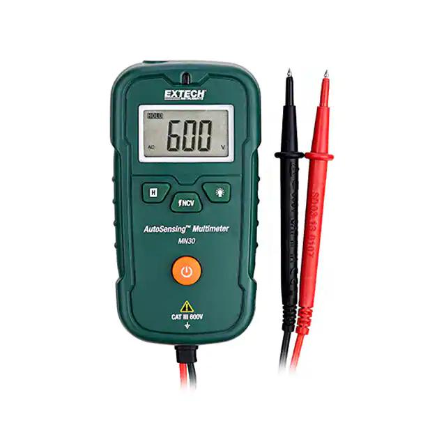 This is manufactured by FLIR Extech. The manufacturer part number is MN30. It is rated with cat iv 600v. Additionally, the product is designed with handheld Style. It is assigned with possible HTSUS value of 9030.32.0000. It comes in digital (dmm) configuration. It performs basic function of voltage, resistance. The product is also supplied with battery, probes. It is shipped in box. Its typical moisture sensitivity level is not applicable. It features a remarkable lcd display. The splendid features of the product include auto off. The product is designated with the ear99 code number