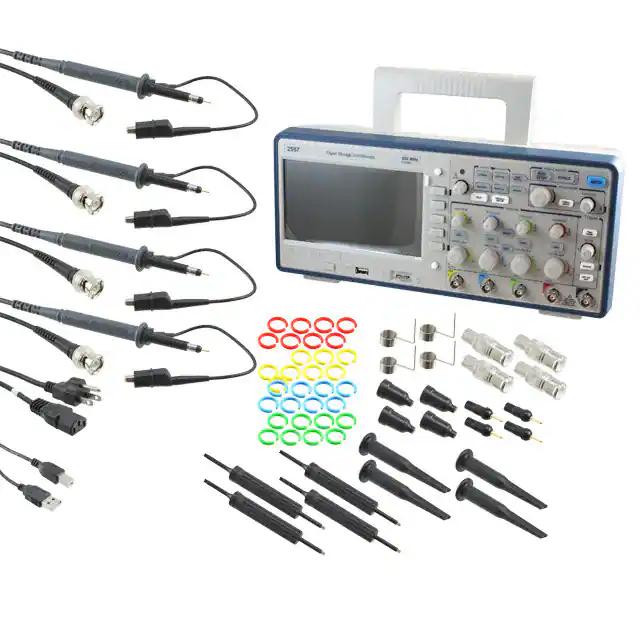 This is manufactured by B&K Precision. The manufacturer part number is 2557. It is assigned with possible HTSUS value of 9030.20.1000. The product is not applicable. In addition, it is reach unaffected. It holds a typical memory size of 48kpts. It comes in bench, digital configuration. It performs basic function of record, playback, save, trend. The product's sampling rate at per second is 2g. The product is also supplied with cord, manual, usb cable. Its maximum input voltage is cat i 400v. A bespoke product is ethernet, usb interface. It is shipped in bulk. Its typical moisture sensitivity level is not applicable. It features a remarkable lcd - color display. The product 2550, is a highly preferred choice for users. Has 200 mhz bandwidth. It has optimum voltage supply of 100 ~ 240vac. The product is designated with the 3a992a code number