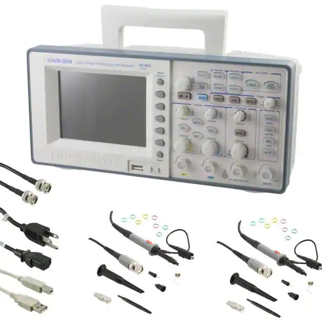 This is manufactured by B&K Precision. The manufacturer part number is 2542B-GEN. It is assigned with possible HTSUS value of 9030.20.1000. The product is not applicable. In addition, it is reach unaffected. It holds a typical memory size of 16kpts. It comes in bench, digital configuration. It performs basic function of record, playback, save, trend. The product's sampling rate at per second is 1g. The product is also supplied with cord, manual, usb cable. Its maximum input voltage is cat i 400v. A bespoke product is ethernet, rs232, usb interface. It is shipped in box. Its typical moisture sensitivity level is not applicable. It features a remarkable lcd - color display. The product 2542, is a highly preferred choice for users. Has 100 mhz bandwidth. It has optimum voltage supply of 100 ~ 240vac. The product is designated with the 3a992a code number