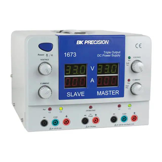 This is manufactured by B&K Precision. The manufacturer part number is 1673. It is assigned with possible HTSUS value of 8504.40.9530. The product is not applicable. Its typical moisture sensitivity level is not applicable. It comes in bench (ac to dc) configuration. In addition, it is reach unaffected. While, the output current includes 0 ~ 6a, 0 ~ 6a, 3a. It is shipped in box. The product's diameters include 12.200" l x 9.000" w x 6.700" h (309.88mm x 228.60mm x 170.18mm). Consists of 3 (4) characters. It has a long 10 weeks standard lead time. It features a remarkable led display. The splendid features of the product include regulated, tracking and parallel modes. The typical product's weight is 20 lbs (9.1 kg). Furthermore, the output voltage is 0 ~ 32vdc, 0 ~ 32vdc, 5vdc. It has optimum voltage supply of 115vac, 230vac. Additionally, the product is supplied with 3 outputs. The product is designated with the ear99 code number